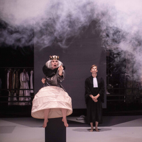 Tout va si vite ! La vie quotidienne file à toute allure. Le temps manque, l’angoisse galope, les machines calculent, la précarité règne. Et les dispositifs néolibéraux essorent. Monde nouveau, consacré au début du 21e siècle, est le premier volet d’un diptyque sur les conditions qui rendent le fascisme possible. Le deuxième volet, Monde grand portera sur le début du 20e siècle. Toujours dans une démarche politique, l’auteur Olivier Saccomano et la metteuse en scène Nathalie Garraud fabriquent une machine-monde kafkaïenne dans laquelle tombe une sorte d’Alice. Elle va y déambuler, à travers de courtes séquences. À la manière de Charlie Chaplin dans Les Temps modernes ou de Maguy Marin dans Umwelt, le duo convoque le burlesque pour explorer un chœur en mutation, pris dans un temps qui s’accélère et court à sa perte. Dans cette abstraction, les sept interprètes luttent avec énergie. Avec lucidité et une grande vitalité, les directeurs du CDN de Montpellier livrent une « fantaisie anthropologique et surréaliste ».