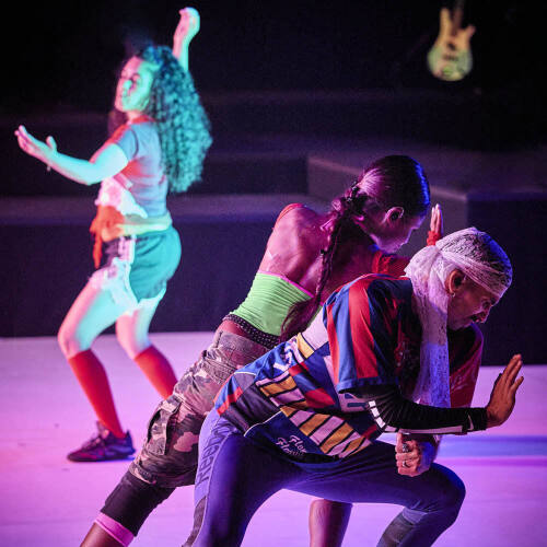 Nous sautons sans cesse d’un code à l’autre. Entre deux pages d’un essai lu dans le TGV, nous consultons la vidéo d’un chaton qui se prend pour un chien… De la musique électronique dans les oreilles, nous recevons des notifications sur le dernier gouvernement sans interrompre notre conversation amoureuse menée par sms… Partant de ce constat, Joris Lacoste imagine un spectacle pop-liturgique pour représenter nos facettes multiples, nos croyances et nos expériences, sans chercher à les uniformiser. Une nouvelle religion pour notre temps qui se donnerait pour profession de foi d’embrasser toutes les formes de vie, toutes les manières d’être. Pour cette cérémonie consacrée à une inclusivité maximale, le metteur en scène s’appuie sur une hétérogénéité des formes. À la fois poésies répétitives, chansons pop, prières matérialistes, chorégraphies K-pop, dialogues absurdes, duos TikTok, discours flamboyants et confidences intimes en mode stand-up, Nexus de l’adoration se moque de la hiérarchie et rend joyeusement toutes choses égales les unes aux autres.