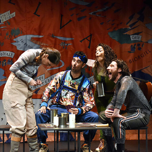Les orcs parlent en rimes façon rappeurs, les elfes flirtent avec Shakespeare dans une traduction surannée, les trolls sont franchouillards façon Audiard, les mages et magiciennes adoptent une langue de techniciens. Malgré leurs différences, les habitant·es de Nelvar partent à la recherche d’une couronne magique pour rétablir l’unité dans leur royaume au bord de la guerre civile depuis la mort du roi. À travers cette quête d’heroic fantasy, Logan De Carvalho cherche à réconcilier ce qui semble irréconciliable. Il tend le miroir d’une France fracturée par les différences de classe, de genre, de culture, de religion… Dans cet univers fantastique, au son épique d’une musique produite en direct, avec beaucoup d’humour et même de la magie, il se demande comment faire cause commune aujourd’hui. Déjà remarqué pour [Rakatakatak] C’est le bruit de nos cœurs, dystopie sur fond de guerre sociale, prix Incandescences 2023, l’auteur, acteur et metteur en scène poursuit son travail linguistique passionnant. Toujours à la recherche d’univers narratifs atypiques, il lorgne vers Game of Thrones et Tolkien pour mieux appréhender les classes populaires, et leurs revendications.